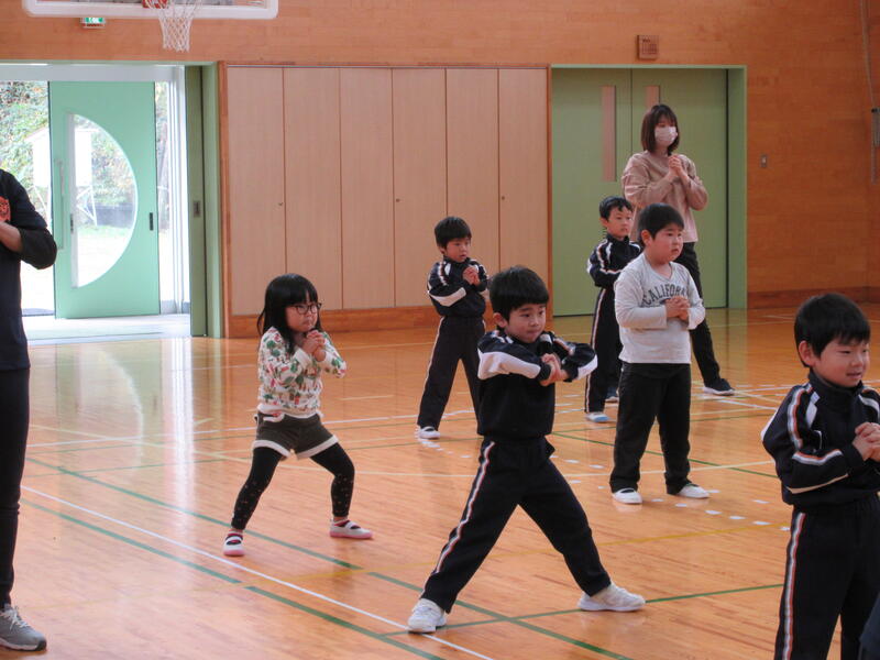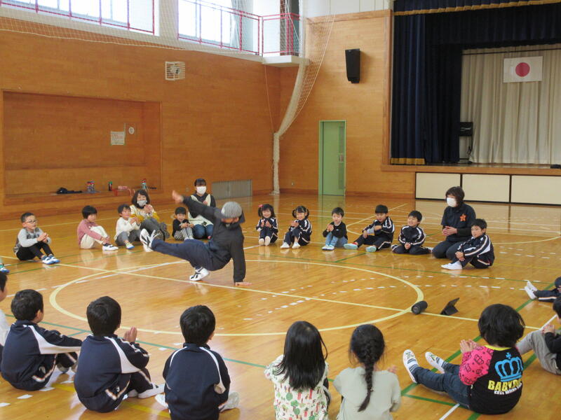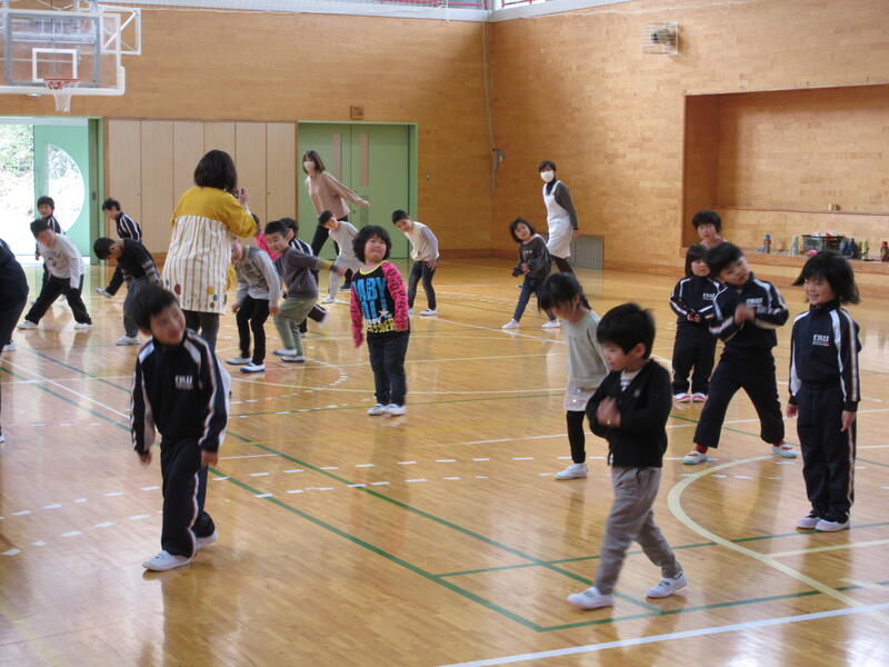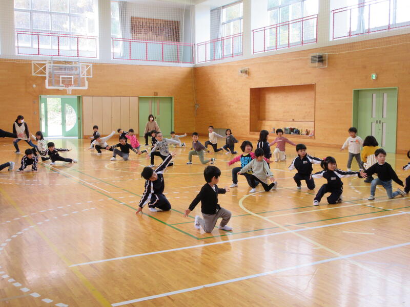今日の三園交流保育は、気の合う友達と一緒に楽しく遊ぶこと、音楽に合わせて体を動かし表現することをねらいとして実施しました。特に、ダンス教室では、講師の先生から直接ダンスを教えて頂き、音楽に合わせて一緒に踊りました。とても楽しそうに踊る園児たち。頑張ったご褒美に、講師の先生のダンスも見せて頂きました。