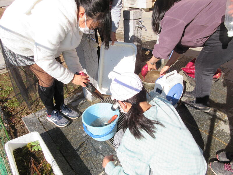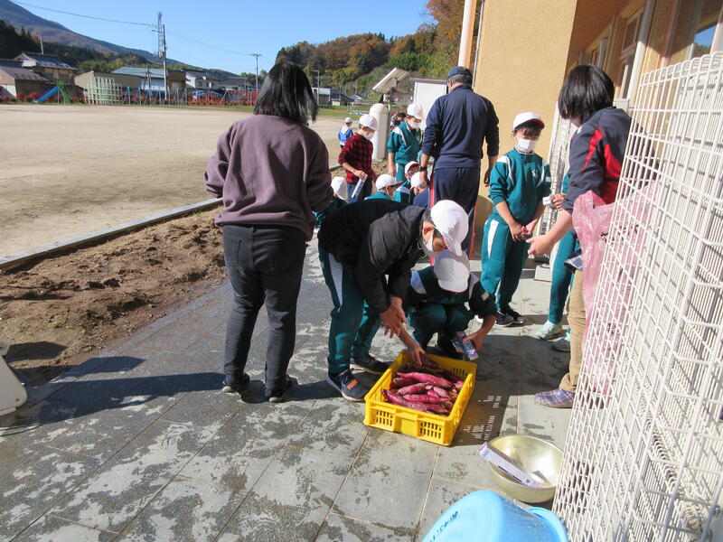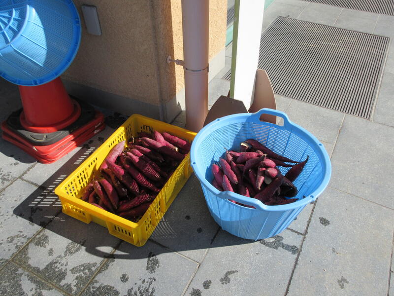 明日の収穫祭に向けて、サツマイモの下準備を行いました。サツマイモは、収穫祭で焼き芋にする予定です。子どもたちは、青空の下でサツマイモを洗ったり、アルミアルミホイルに包んだりと一生懸命準備をしていました。先日、子どもたちが育てた米の脱穀、精米も終わり準備万端。明日の収穫祭が楽しみです。