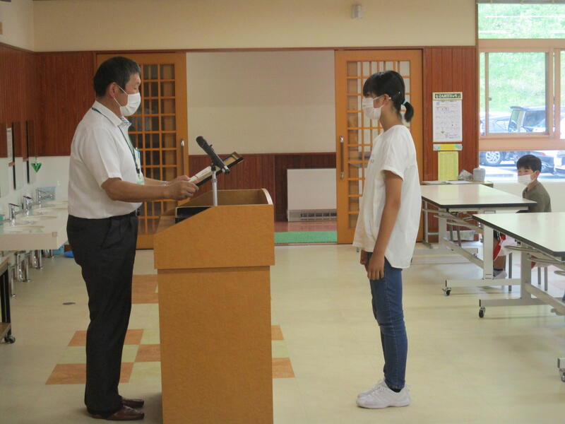 集会の終わりには、「書字力、計算力テスト」で優秀な成績をおさめた友達の、表彰を行いました。