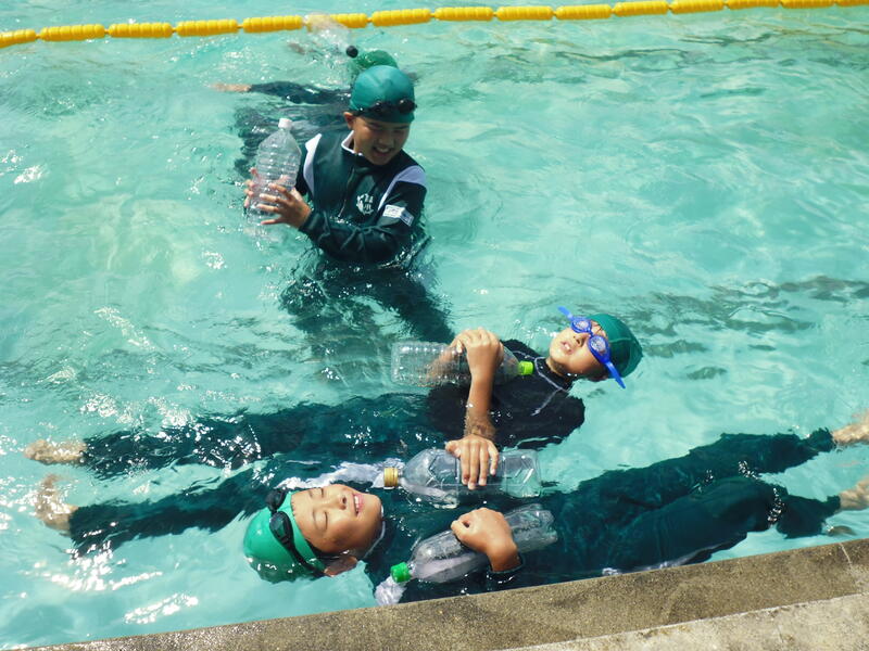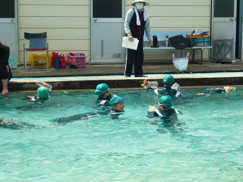 着衣水泳を行いました。服を着たままプールに入った子どもたちからは、「なんか 変な感じ」そんな感想が聞こえてきました。そう、どんな感じか体験することが大事。万が一そんな状況になっても焦らず、自分の命を守る行動ができれば・・・そんな願いを込めた着衣水泳でした。