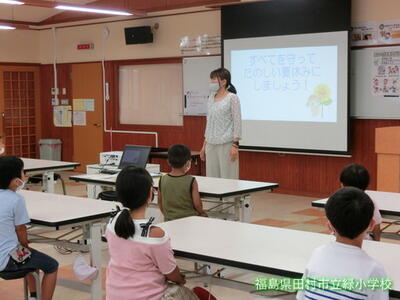 楽しい夏休みにするために、担当の先生から大切な話を聞きました。