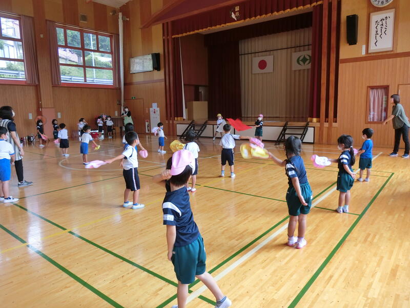今日は、三園合同の交流保育。時間を短縮し、運動会の練習に絞って行いました。子どもたちは、9月10日の運動会に向けて、元気に練習に取り組んでいました。