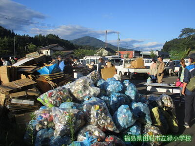 本日、早朝より保護者の皆様、地域ボランティアの皆様のご協力をいただき、廃品回収と奉仕作業を行いました。