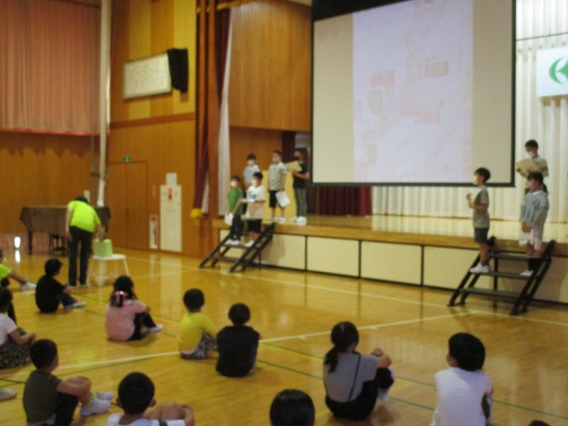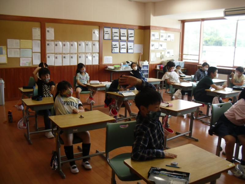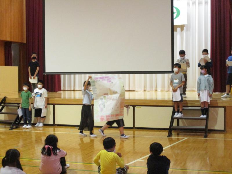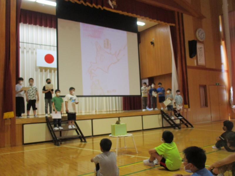 本校では、基本的に木曜日の昼休み後に、15分のきずなタイムを設定しています。そしてその時間にいろいろな集会活動に取り組んでいます。今日のきずなタイムは、4年生の発表でした。4年生は、47都道府県について友達と分担して調べたことを、全校生の前で発表しました。発表の仕方にも工夫が見られました。他の学年のお友達も参加できるように、番号くじを準備し、出てきた番号の県について調べた4年生が発表するというものでした。楽しみながら、他県のことについて学ぶことができました。