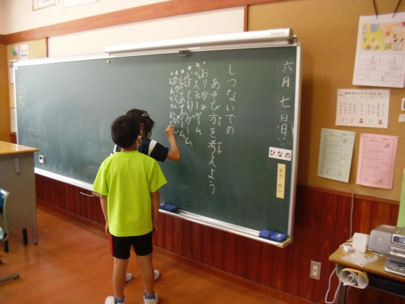 3年生は、梅雨の時期に向けて、室内での過ごし方について話し合っていました。司会や記録等、役割を分担しながら、自分たちのことを自分たちで話し合い、実践していくことで、大切なことを学んでいきます。自分以外の友達と一緒に何かをするために大切なことや、話し合って合意形成したり、意思決定したりする経験等、集団生活を通して、たくさんのことを学んでいます。