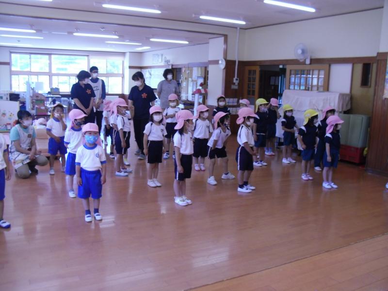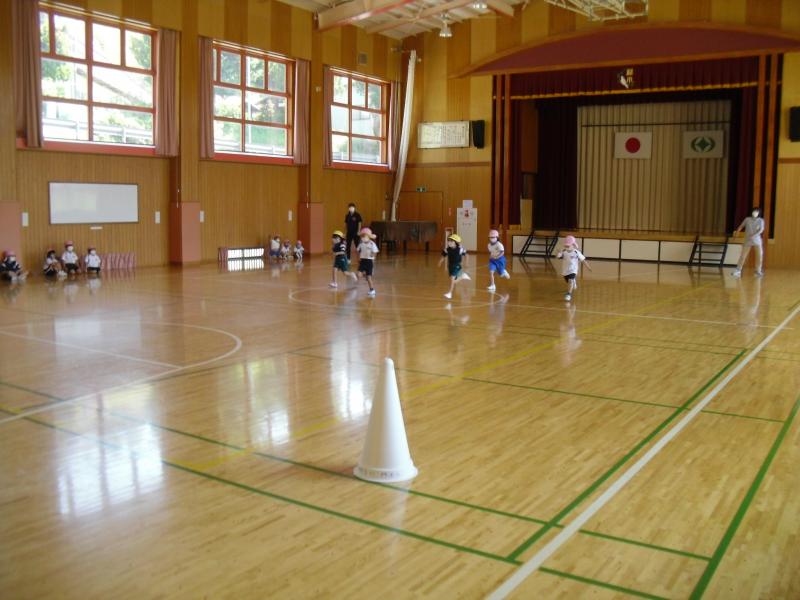 今日は、芦沢幼稚園、船引南幼稚園との第1回交流保育がありました。はじめの会では、各幼稚園の園児が一人一人自己紹介をしました。その後、体育館で体操やかけっこの練習をしたり、外遊びをしたりと他の園のお友達と仲良く、楽しい時間を過ごしました。子どもたちは、遊びの中で大切なことをたくさん学んでいます。