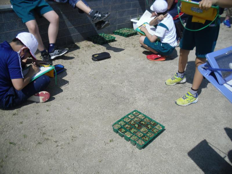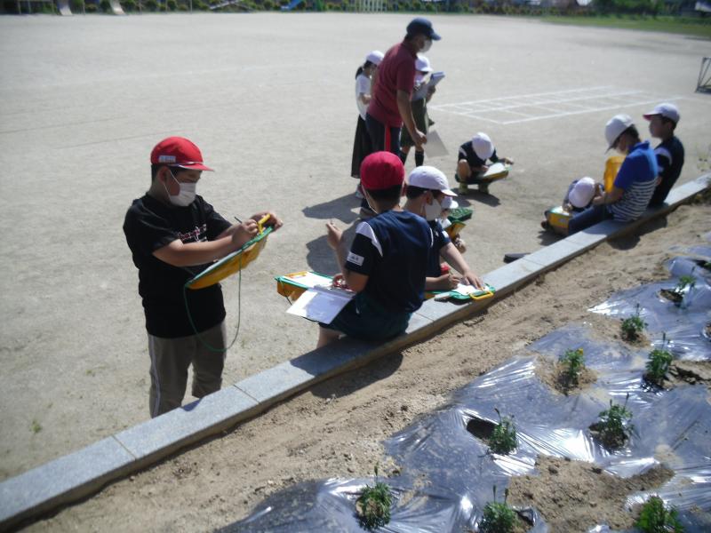 エゴマの成長を観察し、丁寧にきろくしていました。ホウセンカも植え、サツマイモの観察にも行きました。