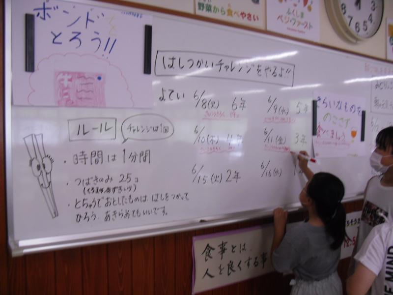 今日の委員会タイム(業間)は、運動委員会が担当です。体育館で楽しくドッジビーをして運動しました。高学年が分担してゲームの審判をし、下級生の面倒も見ていました。お昼休みには、さわやか生活委員会が企画した「はしつかいチャレンジ」が行われていました。制限時間内にカップ内のものをいくつ移せるかを競うゲームでした。子どもたちは楽しみながらはしの使い方を学び、運営する子どもたちも主体的に活動する楽しさを味わっているようでした。