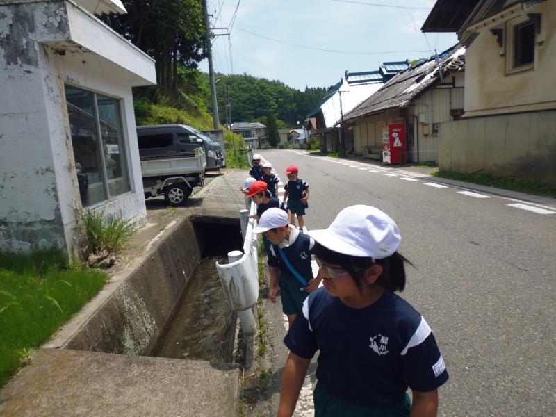 今日の3・4校時、1年生は通学路の探検に行きました。通学路とその近くで、いろいろなものを見つけたようです。