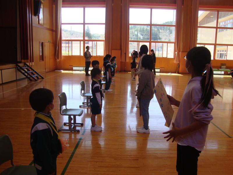 今日、1年生を迎える会を行いました。入学式から今日まで、2~6年生は、様々な形で1年生と関わりながら、また、面倒を見ながら生活してきました。学校生活にも少しずつ慣れてきた1年生。今日は、やさしい上級生たちと楽しい思い出を作ることができました。