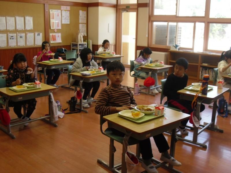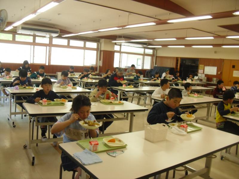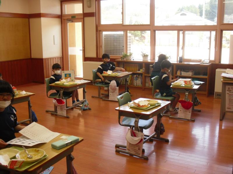 今日から今年度の給食が始まりました。子どもたちも先生方も久しぶりの給食をおいしくいただきました。緑小学校では、コロナウィルス感染防止のため、1・2年生はそれぞれの教室で、3~6年生は、多目的ホールでと場所を分けて給食をいただいています。