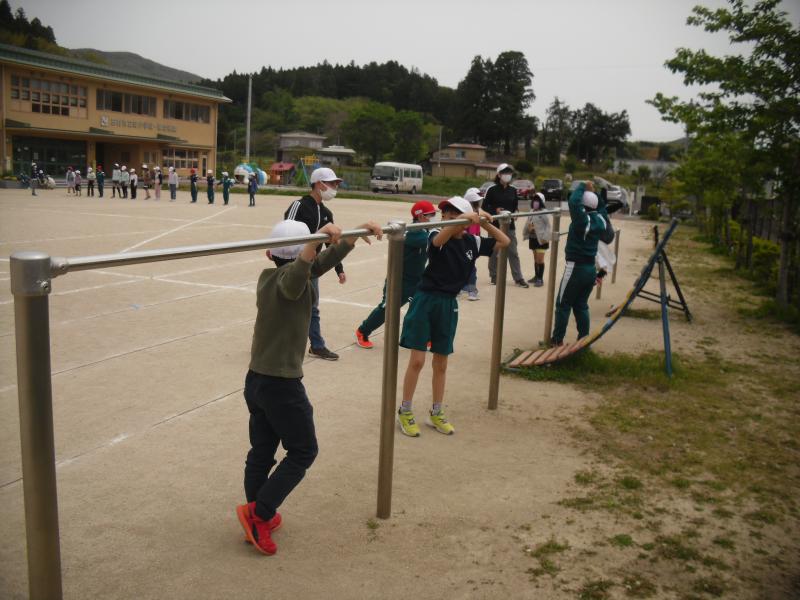 毎週金曜日の業間に委員会タイムを行っています。今日は運動委員会が中心となって、体力づくりに取り組みました。種目は50m走、鉄棒、雲梯です。