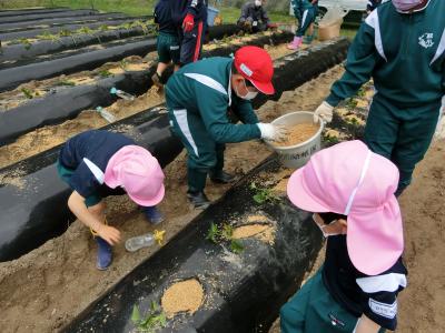2021年5月20日 09時49分本校では、生活科、総合的な学習の時間の中で、全校共通の環境学習(絆の桜の世話、サツマイモの苗植えと収穫、森林学習、収穫祭)に取り組んでいます。昨日は、サツマイモの苗植えをしました。緑の指導員のご指導のもと、苗の植え方や世話の仕方を学びました。これからも豊かな体験活動を通して、地域の環境を守ることや食料の大切さを学ばせ、地域愛や感謝の心を育てていきたいと思います。