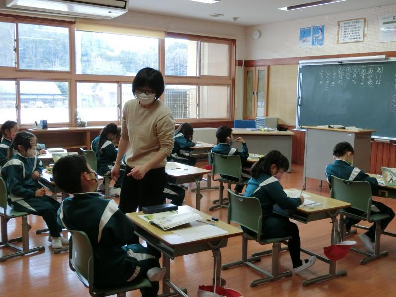 今日も天気が良く、気持ちいい一日となりました。子どもたちは、教室や外で元気に学んでいます。1年生は、はさみの使い方の勉強です。先生が言う形に上手に紙を切る練習をしました。2年生は、外に春を見つけに出かけました。見つけた春は観察カードに記録します。3年生は社会の学習です。これから学校のまわりや市の様子について学習していきます。4年生は、日本の県の名前と場所をパズルで勉強しました。パズルが完成した班からは、「先生 できた。」と歓声が上がっていました。5・6年生は、きずなの桜の観察です。高学年らしく、詳しく観察していました。中には、桜の芽の数を数えたお友だちもいました。