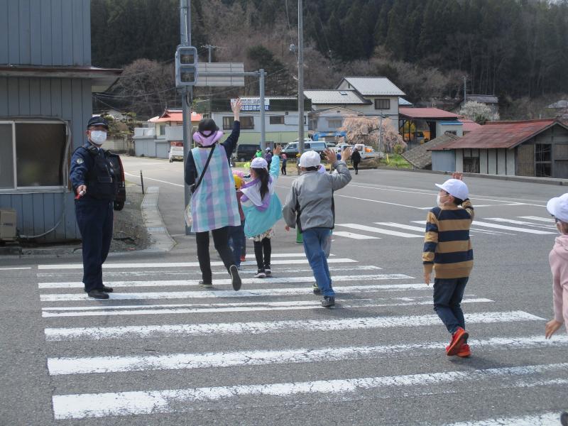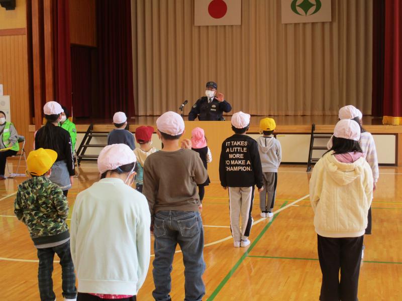 今日は、3校時目に交通安全教室を行いました。移駐在所長様、交通安全母の会会長様、見守り隊の隊員様のご指導、ご協力のもと、子どもたちは、安全な歩行の仕方について学習しました。歩いている子どもたちに問題がなくても、運転する側に問題があれば、子どもたちは危険に晒されます。だから、歩くときは下を向かず、周囲をよく見て歩くよう話をしました。『自分の命は自分で守る』身の回りの危険に気づき、様々な場面、状況で自分の命を守る行動がとれるよう、これからも安全指導を行っていきます。