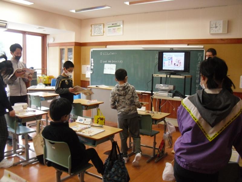 今日は、5・6年生の英語の授業がありました。それぞれの学年にALTの先生が一人ずつ入り、担任の先生や教頭先生、支援員の先生と一緒に楽しく学びました。電子黒板も活用しながら、目と耳で英語に触れるとともに、自分も話すことで英語に慣れ親しんでいます。