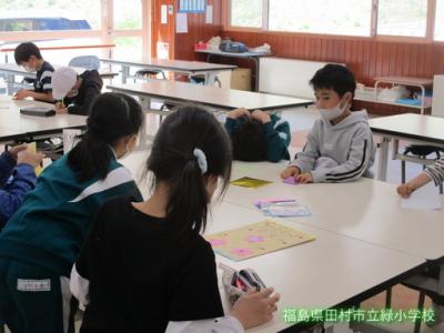 2021年4月22日 18時06分27日(火)に行う、1年生を迎える会に向けて、縦割り班ごとに、1年生へのプレゼントを作りました。