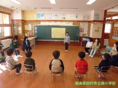 今日、来年度入学する新入生7名が、緑小学校にやってきました。1年生と楽しく交流しました。