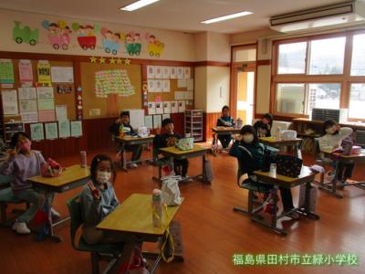 13日(土)の地震により、給食センターが被害に遭ってしまったため、子ども達は今日からお弁当を持ってきています。お昼の教室をのぞいてみました。