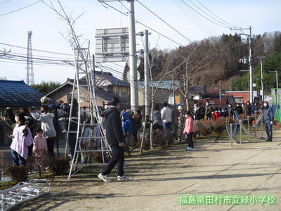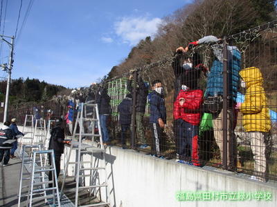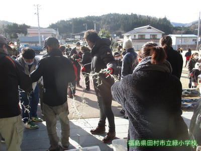 29日(日)に、保護者の方々、児童・園児、教職員、地域の方みんなで、緑っ子イルミネーションの設置作業を行いました。