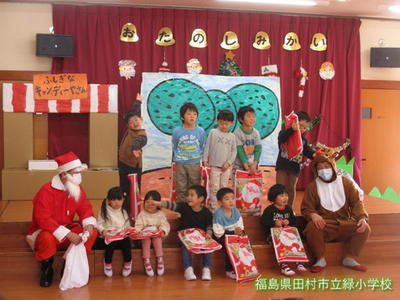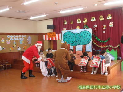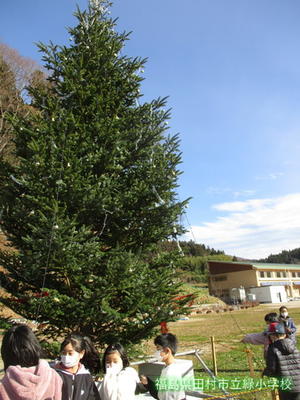今年は、大きな大きなもみの木が、校庭を飾っています。点灯後、みんなもみの木のそばに集まりました。地域の方からの素敵なプレゼントに、みんなは大喜びでした!
