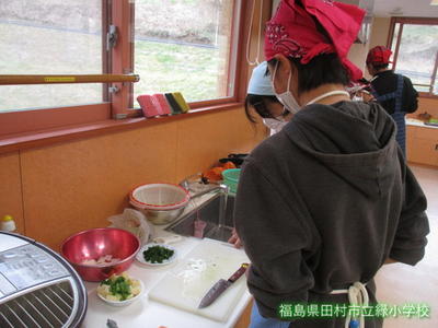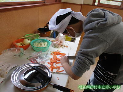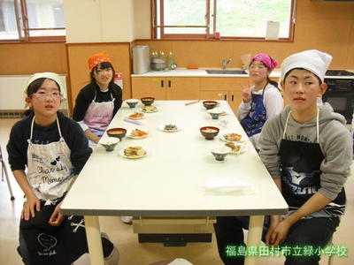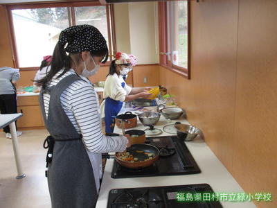 今日、5・6年生が調理実習を行いました。ご飯とみそ汁と、おかずを作りました。5、6年生だけ、今日は給食がありません。何としてでも、今日の調理実習は成功させないと・・・! 5、6年生のみんなは、手順を確認しながら、一生懸命に作業を進めました。