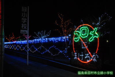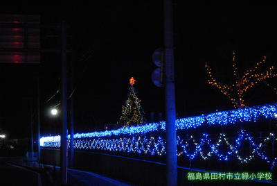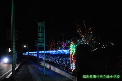 1/9日(土)【時間は17:00~22:00】まで点灯しています。美しく彩られている緑小学校を、ぜひ観にいらしてください。