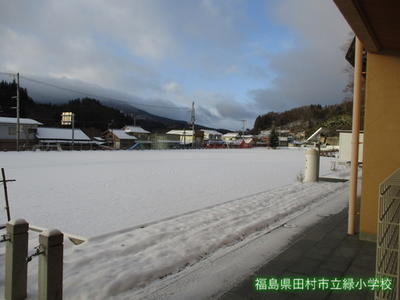 今日緑小は、今シーズン初めて、雪の朝を迎えました。