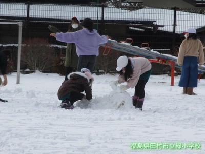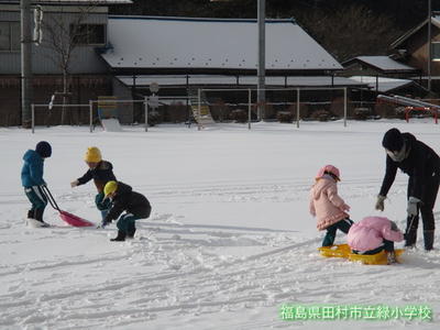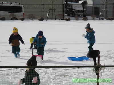 幼稚園生も、小学生のみんなも・・・外に出て、雪遊びを楽しんでいました。