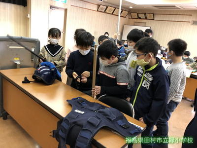 2020年12月16日 16時08分今日、3年生のみんなが、美山小、瀬川小、要田小の3年生と一緒に、田村警察署を見学しました。