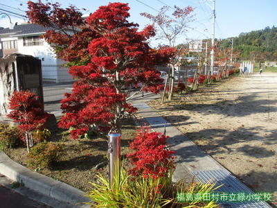 秋が深まり、校庭のまわりの木々がきれいに色づいています。