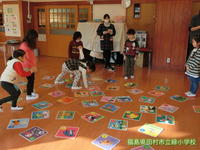 3園のお友達が集まり、全員で大きなカルタをしたり、