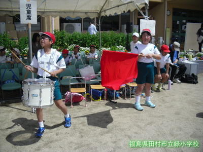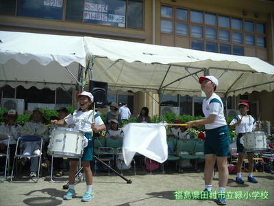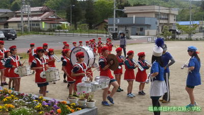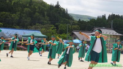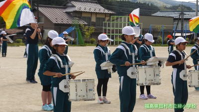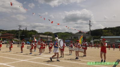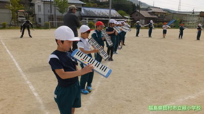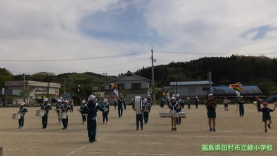 鼓笛も、校庭での初めての練習で、隊形や動きを確認しました。