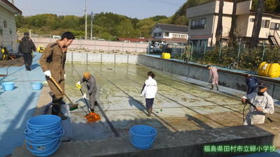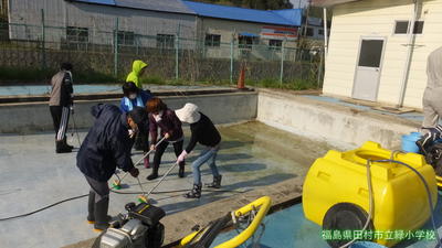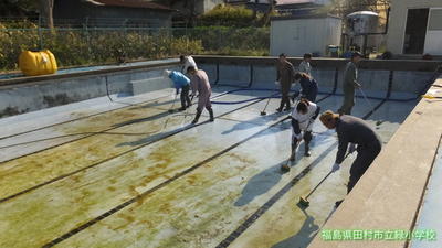 真夏のような暑さとなり、全校生でプール清掃を行いました。