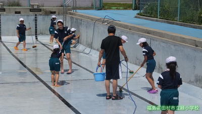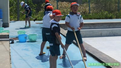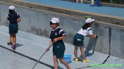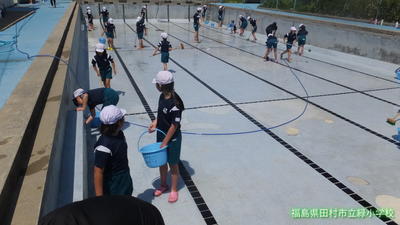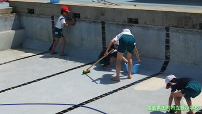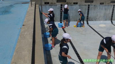 2019年5月27日 15時04分真夏のような暑さとなり、全校生でプール清掃を行いました。