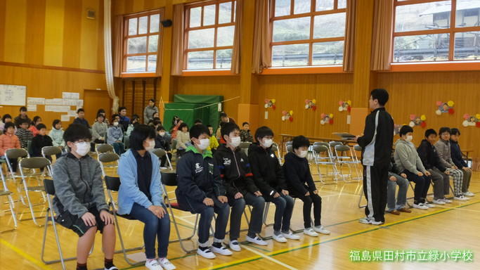縦割り班のゲーム、プレゼント、6年生のお礼の発表、