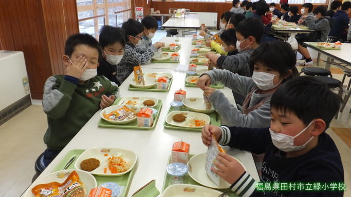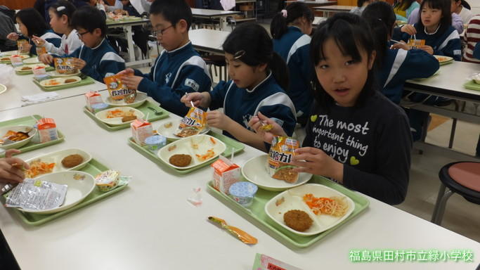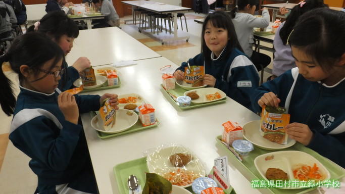 給食は、市給食センターで備蓄されている「救給カレー」でした。