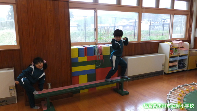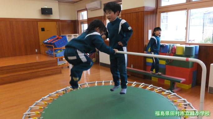 緑小学校は、全校生50人ほどの小規模校です。1年生から6年生までみんな仲が良く、天気のいい日には、みんなで元気に校庭で遊んでいます。学年に関係なく、一緒に鬼ごっこをしたりボール蹴りや一輪車をしています。鉄棒や雲梯で遊ぶお友達もいます。また、緑幼稚園が併設されており、幼・小連携のもと教育活動に取り組んでいます。