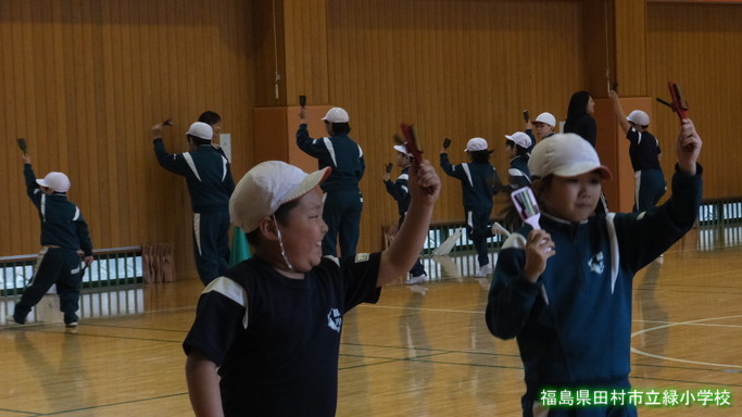 今日はあいにくの雨。体育館で「よさこい」の練習をしました。