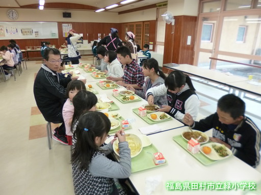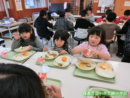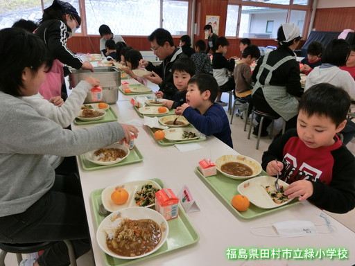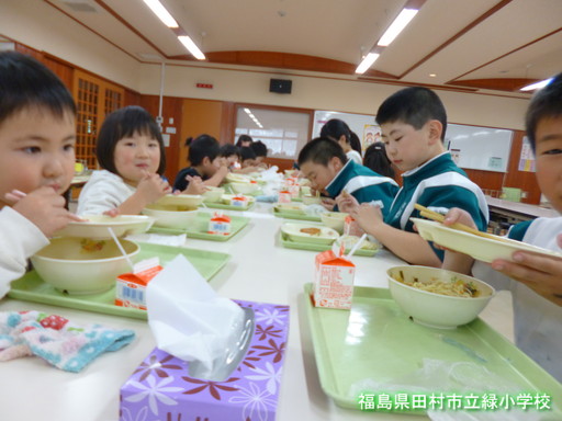 小学生といっしょに給食を食べました。