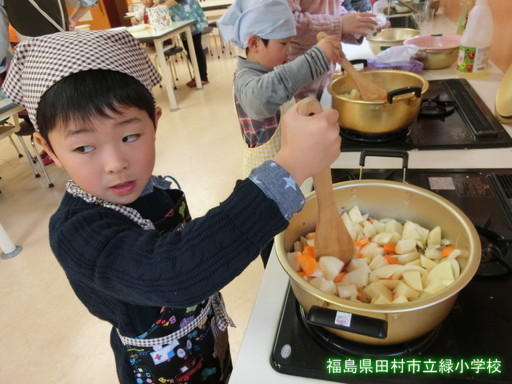 お家の方に手伝ってもらいながら、野菜の皮をむいたり、