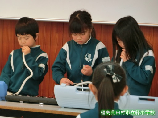 音楽の時間に練習した歌や鍵盤ハーモニカの演奏を発表しました。