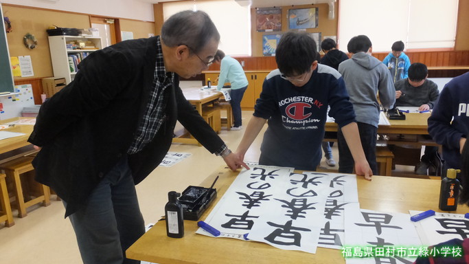 指導の先生をお迎えし、2回目の書き初めの授業を行いました。