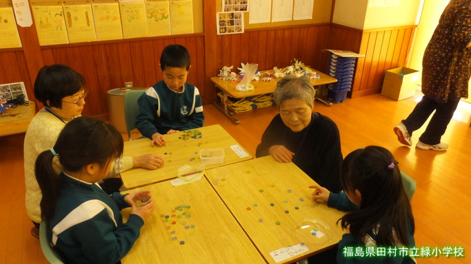 「昔遊び」を行いました。お手玉、ビー玉、缶馬、あやとり、メンコ・・・