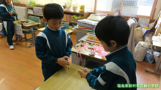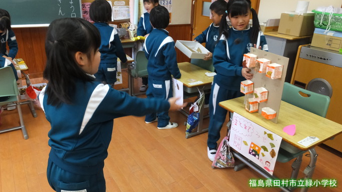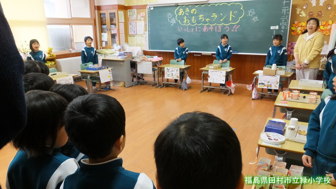 1年生が工夫して手作りしたおもちゃやプレゼントに、