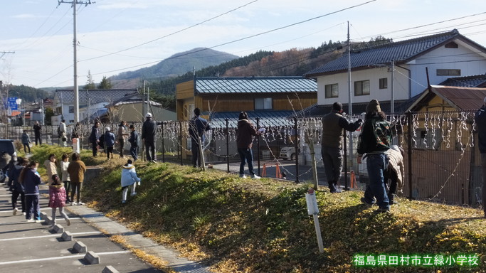 校舎前のフェンス全長約150mに、無事に飾り付けが完了しました。