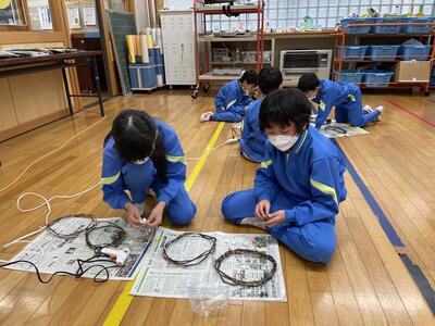 今日、1・2年生がリース作りをしました。サツマイモのツルを使って、作っていた輪に、グルーガンで松ぼっくりやどんぐり、ヒイラギの葉をつけて、素敵なリースができました。クリスマスが待ち遠しいですね!