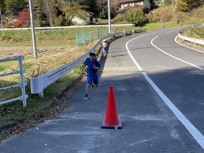 校内マラソン大会の最後は5・6年生です。距離は2000mで、最後の心臓破りの坂を駆け上がってゴールになります。保護者の方の声援を受け、風を切って走る姿を見せてくれました。