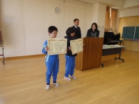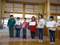 今日、全校集会が行われ、1年生の学年発表と表彰が行われました。1年生の子どもたちは、この日のために発表内容を自分たちで話し合ったり、進んで練習に取り組んだりしてきました。今日はその成果があらわれた素晴らしい発表でした。発表後は子どもたちからたくさんの拍手が送られました。また、感想文コンクール・作文コンクール・家族のきずなエッセイコンクール・地区造形展・地区音楽祭(創作の部)の表彰が行われました。笑顔いっぱいの集会となりました。