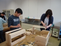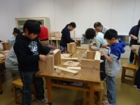 次に、木工工作に挑戦!今年は本棚作りに取り組みました。昨年度も体験している子どもたちだけあって、のこぎりの使い方やくぎの打ち方も上手でした。短い時間で、立派な本棚を完成させた子どもたちは、全員満足そうな笑顔でした。